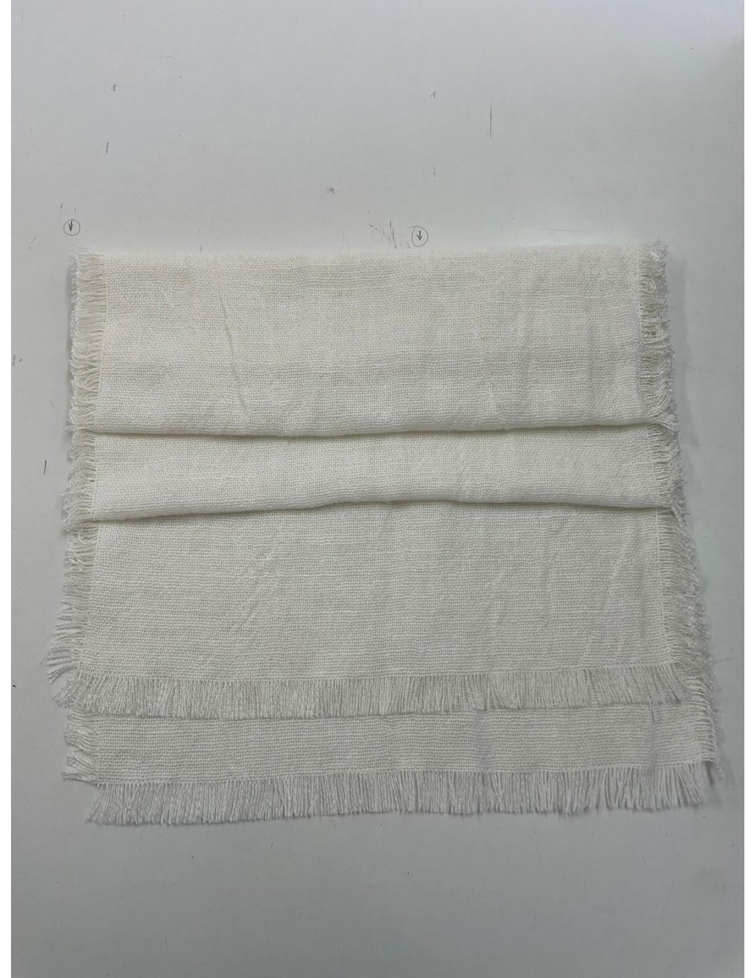 Camino de mesa rectangular desflecado perimetral, composicion 70% lino 30% poliester, color natural de medidas 40 cm de ancho por 160 cm